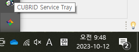 설치 맨 마지막에 CUBRID Service Tray 실행하기에 체크된 상태로 완료를 하면 오른쪽 하단에 CUBRID Service Tray 아이콘이 떠있는 것을 볼 수 있다. 이로서 설치와 구동이 모두 이루어졌다.