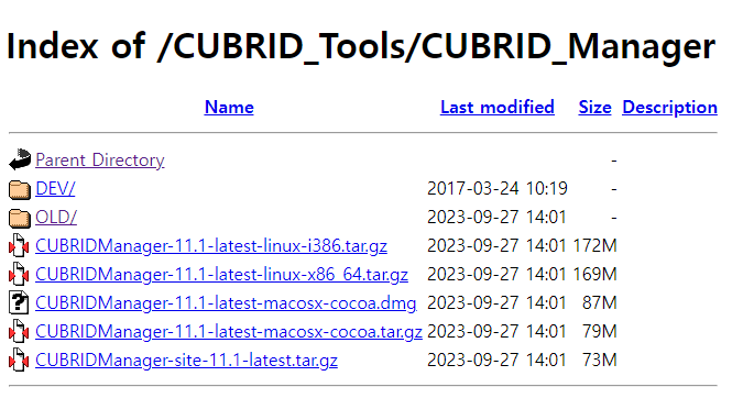 이제 관리툴인 매니저를 다운로드해야 하는데 홈페이지 목록에는 windows용 설치파일이 없다.